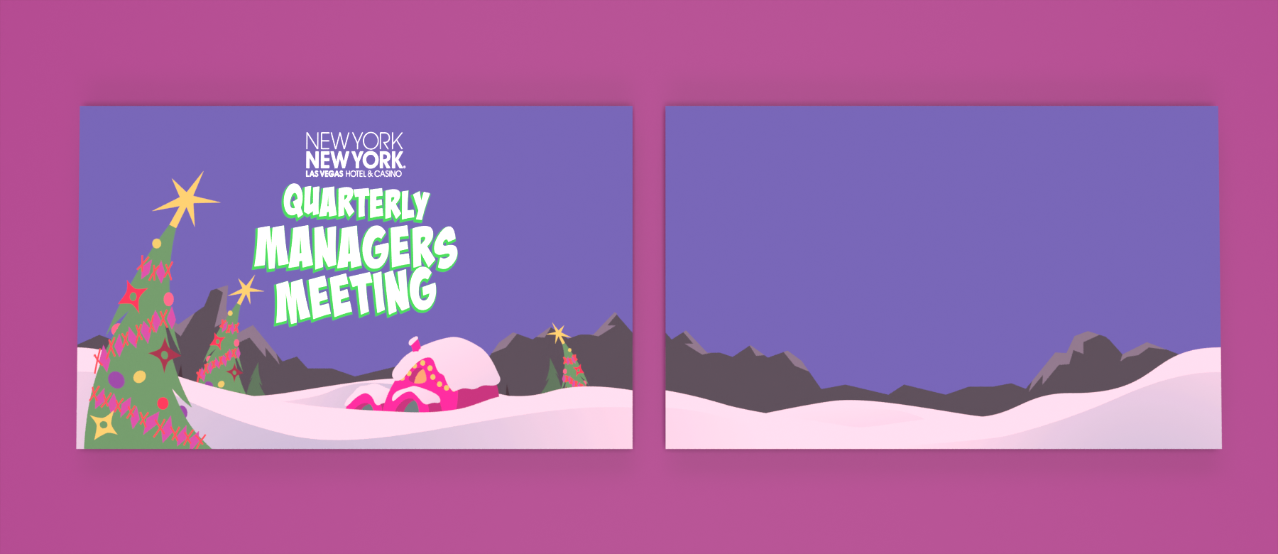 I was a participant in a designer swap at MGM Resorts between creative departments that ended with a meeting to discuss the differences. My portion of the presentation shows my thoughts as if run by an OS, full of Easter Eggs. October 2018 | Photoshop and Illustrator CC, PowerPoint 365